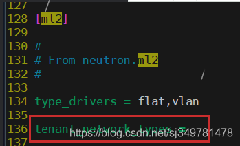 a、在[ml2]部分,启用flat, VLAN 网络: