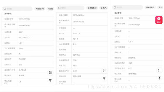 (三款投影仪部分参数)