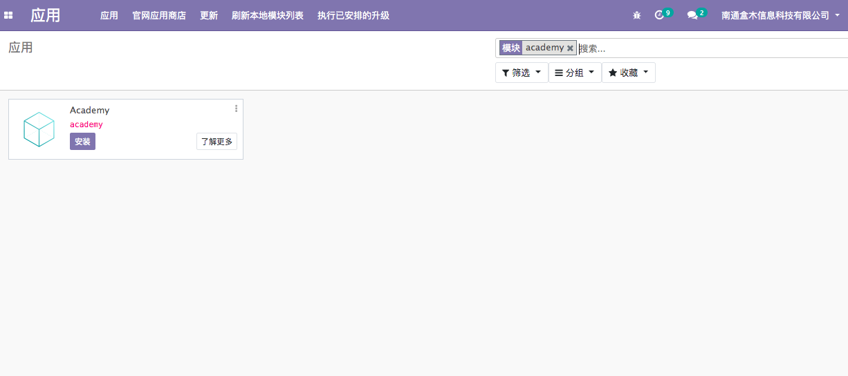 安装按钮安装 Academy 模块