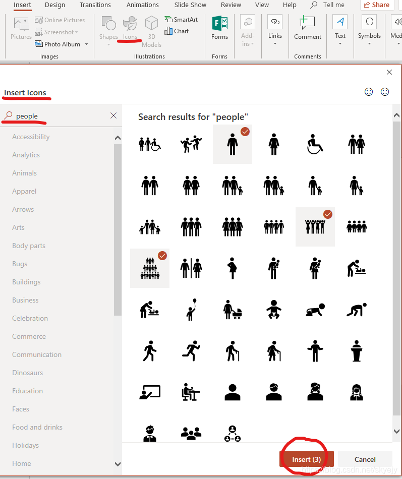 选择插入图标,还可以根据关键词搜索图标~