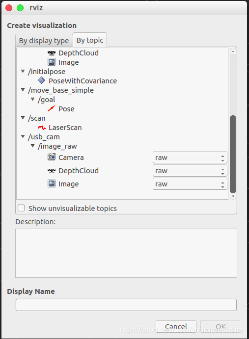 打开一个新的终端,进入Autoware安装的文件夹下的ros文件夹,输入sudo source ./devel/setup.bash命令,再在该终端输入rosrun calibration_camera_lidar calibration_toolkit启动calibration toolkit。软件启动后首先弹出选择相机话题的对话框,选择/usb_cam/image_raw的话题;随后选择标定类型,我们选择Cmaera—>2DLIDAR的标定方式,如图17所示。