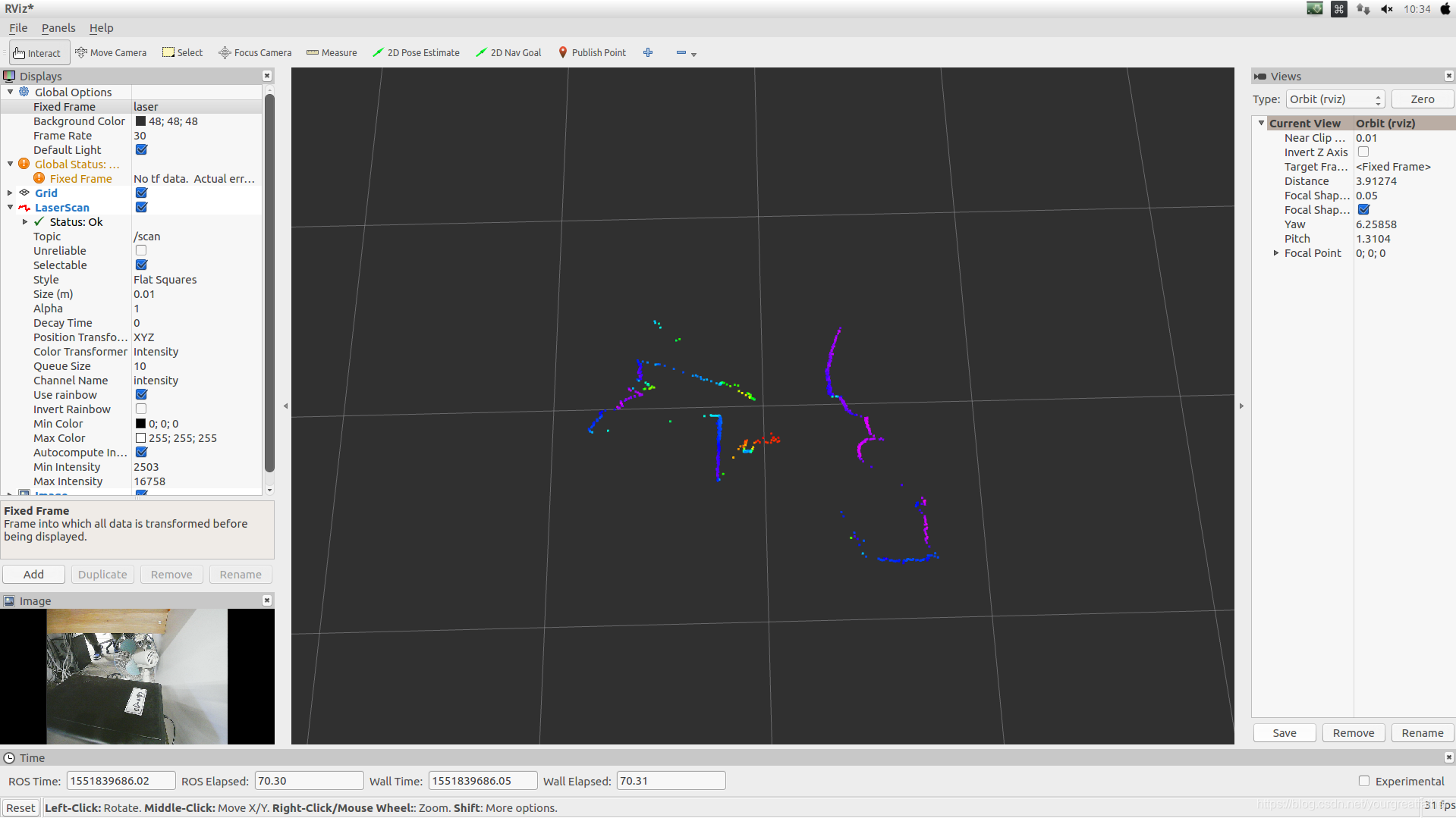播放rosbag,当calibration toolkit中出现满意的画面及激光数据时暂停rosbag;