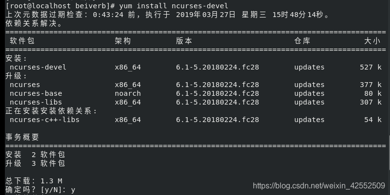 2:是有安装权限的root用户:这种情况稍等几秒钟,会有一行字问是否安装:输入y按回车即可