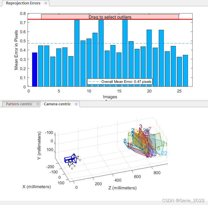 右上角平均误差推荐在0.5以下时,表明该标定数据可信(本人此次平均误差为0.47 )。