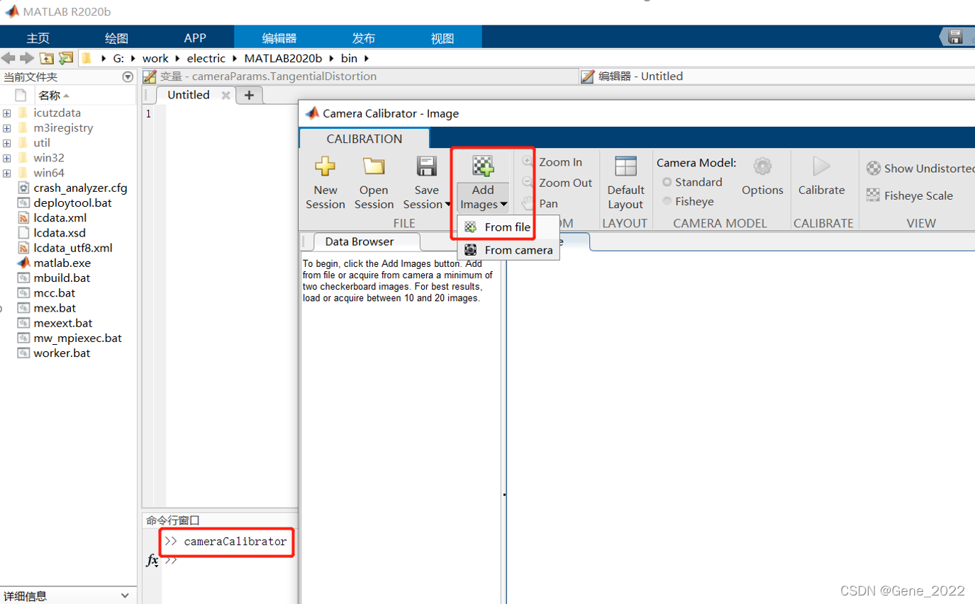 步骤1:在Matlab的Command Window里面输入cameraCalibrator即可调用标定应用程序。