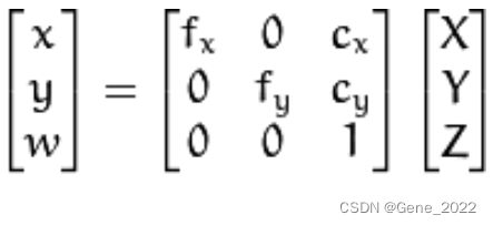 3)相机内参:相机矩阵和畸变系数统称为相机内参,在不考虑畸变的时候,相机矩阵也会被称为相机内参;