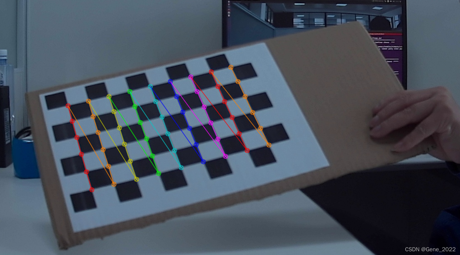 运行以下参考程序按q键即可保存图像,注意尽量把镜头的每个方格都覆盖到,最好拍到整张打印纸。保存大约20到25张,通过 Matlab 标定软件可能会剔除部分图片。
