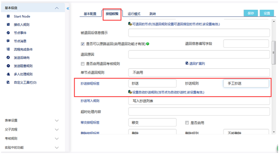 2.设置抄送的位置不变,即:节点属性-按钮权限