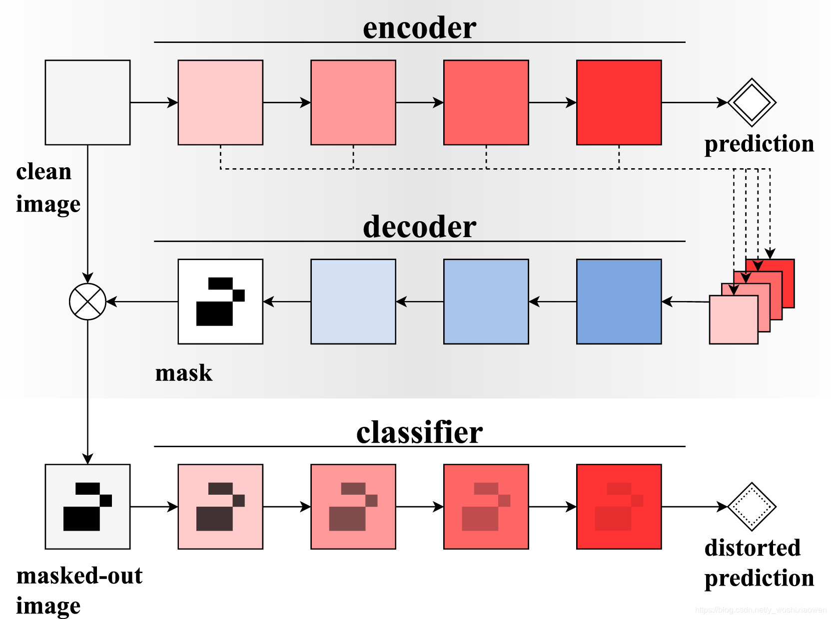 与对抗本地网络不同点:1)分类损失->熵损失,可获得更好的显着性图。2)结合了编码器和分类器的权重,训练过程更快,更好的性能。3)仅适用于原始像素。