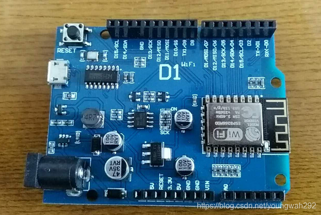 D1是基于ESP8266物联网芯片的模块,它的外形是arduino UNO经典形状。后续出来了很多体积更小的模块