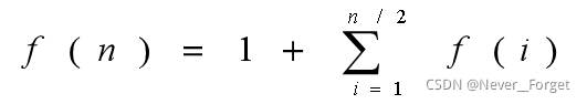 using namespace std;int f (int n) {int x=1;if(n==1){return 1;}else{for(int i=1;i<=n/2;i++){x+=f(i);}}return x;