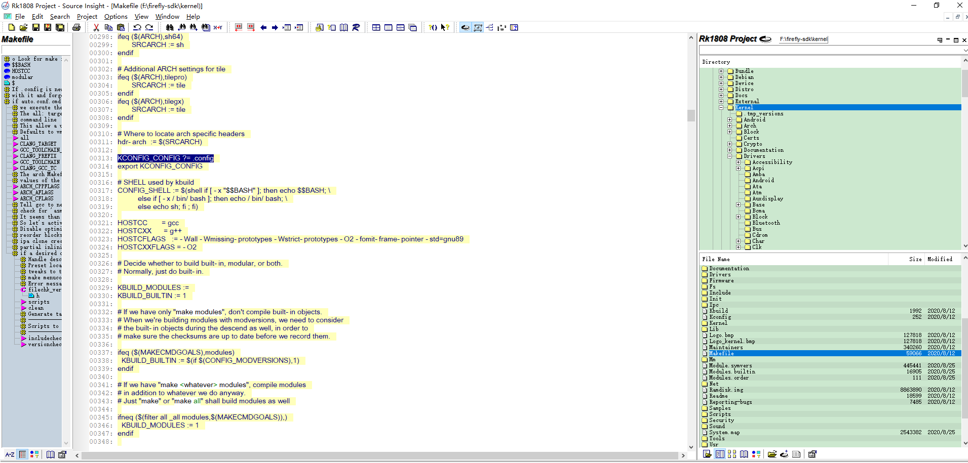 a.进到kernel根目录下,打开下面的Makefile(firefly-sdk\kernel\Makefile),可以看到这里编译内核是通过.config来进行编译的