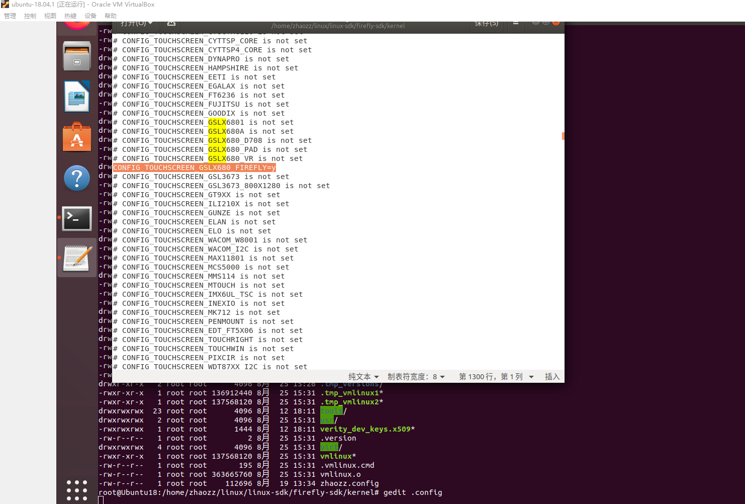 通过gedit .config命令可以查看.config内容,可以看到CONFIG_TOUCHSCREEN_GSLX680_FIREFLY=y