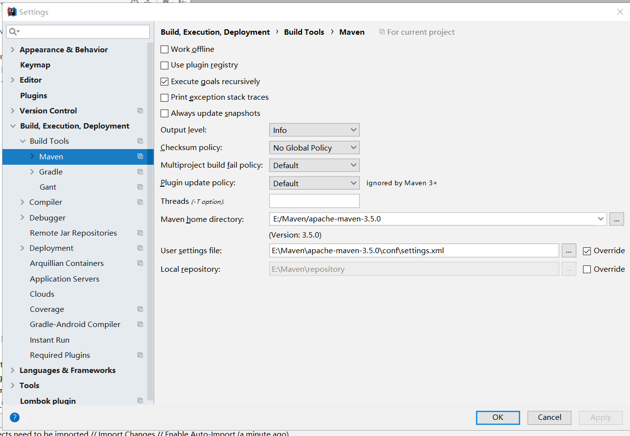 3.在弹出的菜单框中选择Build,Execution,Deployment选项中的Maven选项,在右边的User settings file中设置本地apache-maven包下的conf目录下的settings文件,就设置好了。