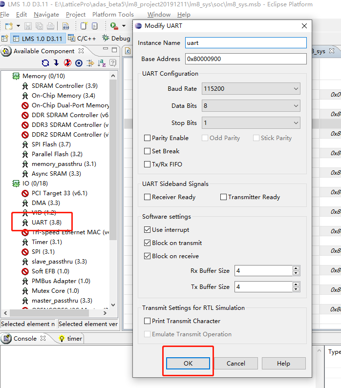 本文主要是介绍Lattice Mico8在LMS添加UART,希望对大家解决编程问题提供一定的参考价值,需要的开发者们随着小编来一起学习吧!