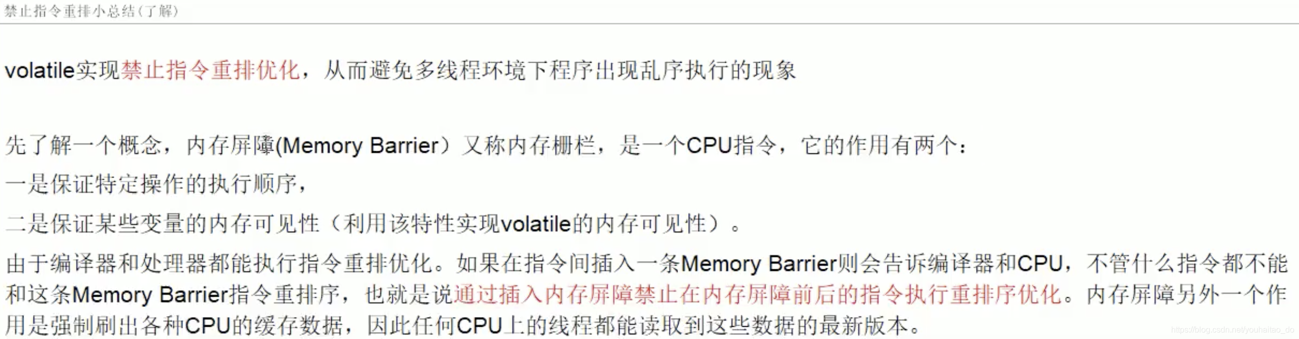 对于指令重排导致的可见性问题和有序性问题:可以利用volatile关键字解决,因为volatile的另外一个作用就是禁止重排序优化。