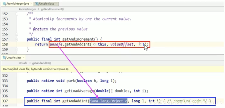 CAS并发原语体现在JAVA语言中就是sun.misc.Unsafe类中的各个方法。调用UnSafe类中的CAS方法,JVM会帮我们实现出CAS汇编指令。这是一种完全依赖于硬件的功能,通过它实现了原子操作。再次强调,由于CAS是一种系统原语,原语属于操作系统用语范畴,是由若干条指令组成的,用于完成某个功能的一个过程,并且原语的执行必须是连续的,在执行过程中不允许被中断,也就是说CAS是一条CPU的原子指令,不会造成所谓的数据不一致问题。