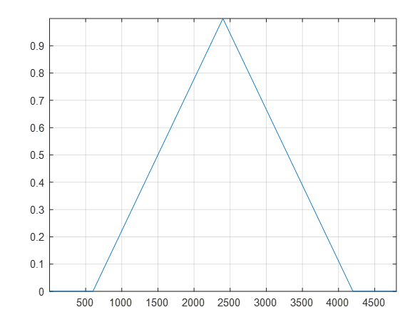 其中n=1,2,⋯,N-1 ,N 表示窗函数的总长度,M表示窗函数的有效长度。三角窗的形状如下图所示。