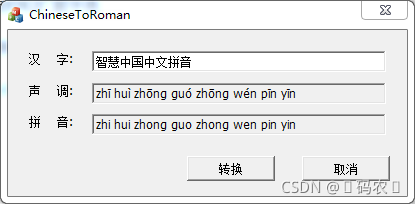 本文主要是介绍中文转拼音 中文转罗马声调,希望对大家解决编程问题提供一定的参考价值,需要的开发者们随着小编来一起学习吧!