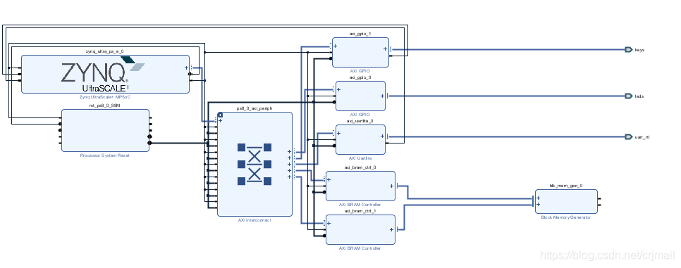 axi_bram需要与Block Memory Generator模块共同使用,axi_bram将PS的AXI操作转化为bram的控制接口时序。