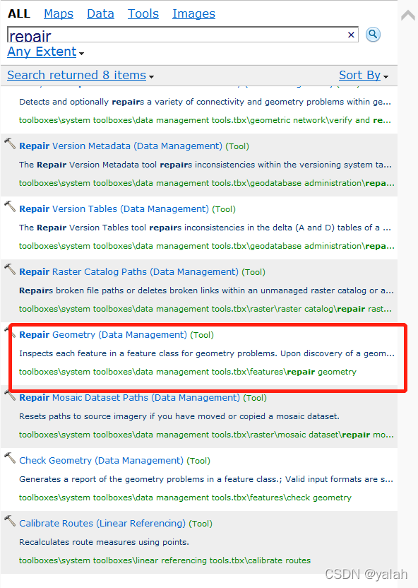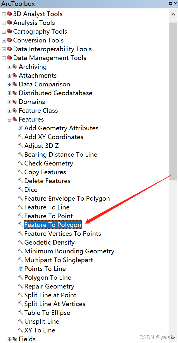 4、利用【arctoolbox】-【数据管理】-【要素】-【要素转面】工具,使用闭合线数据绘制面,通常这一步会出现问题,这时候可以对线数据进行【几何修复】处理;