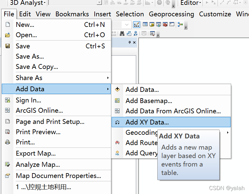 2、利用arcmap的【导入数据】—【导入XY坐标】工具,x选择经度,y选择纬度,在地图上展示点;