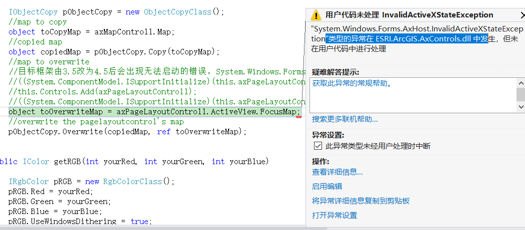 本文主要是介绍c#+AE开发中,System.Windows.Forms.AxHost.InvalidActiveXStateException 在 ESRI.ArcGIS.AxControls.dll 中发生,希望对大家解决编程问题提供一定的参考价值,需要的开发者们随着小编来一起学习吧!