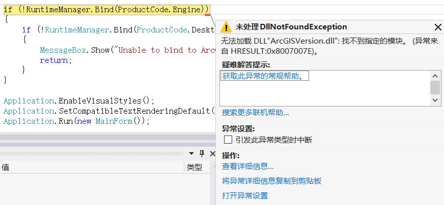 Application.EnableVisualStyles();Application.SetCompatibleTextRenderingDefault(false);ESRI.ArcGIS.RuntimeManager.Bind(ESRI.ArcGIS.ProductCode.EngineOrDesktop);Application.Run(new MainForm());