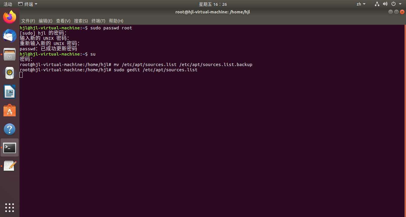 先输入以下命令用来备份/etc/apt/sources.list文件: