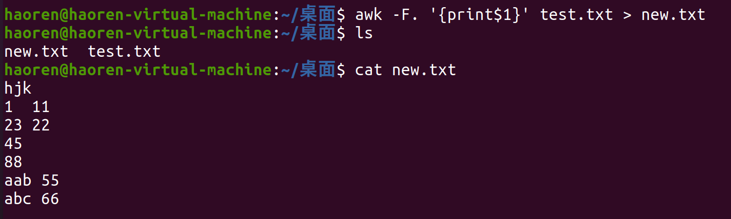 - 在该示例awk命令中,使用 “-F.” 告诉awk文件中各部分数据是用" . "分隔的。