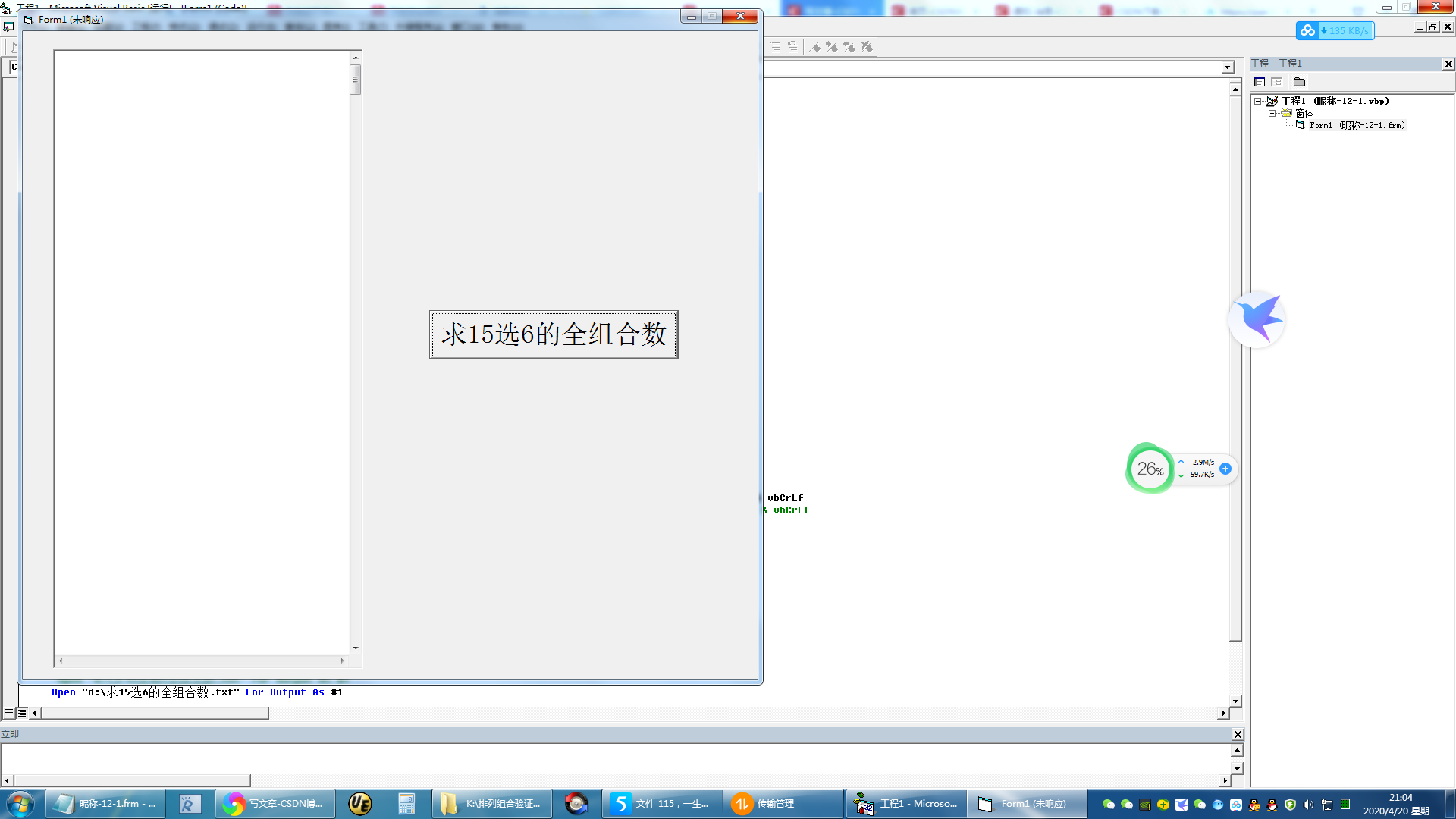 这篇关于20200420使用VB6.0求15选6的全组合数(解决定长字符串可包含 1 到大约 64K的问题)的文章就介绍到这儿,希望我们推荐的文章对编程师们有所帮助!