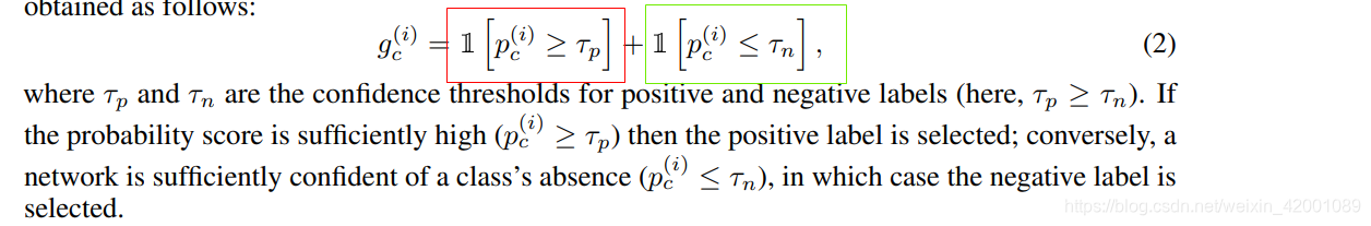 红框是应用了不确定性策略,绿色应用了Positive & Negative Pseudo Label策略,综合两个策略,只有同时满足两个策略即两个策略都有高的置信度,gc才为1(这个样本的伪标签可信),即才用这个样本去训练,否则不用。