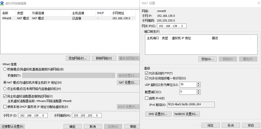 子网IP为:192.168.139.0,子网掩码为:255.255.255.0,因此,在Ubuntu中,设置IP地址的时候,可以设置为192.168.13.x,x可以为1~255。