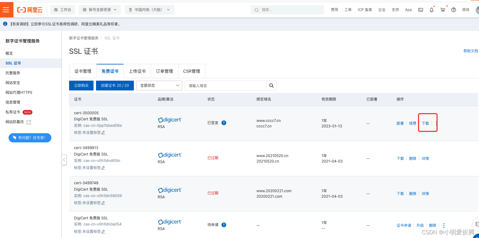 https://yundun.console.aliyun.com/?spm=5176.12818093.ProductAndService--ali--widget-home-product-recent.dre0.25f216d0kSFJGe&p=cas#/certExtend/free