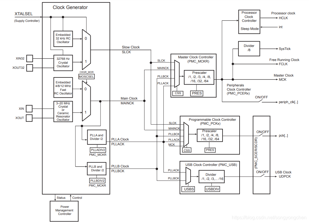 本文主要是介绍Atmel SAM4S 时钟框图,希望对大家解决编程问题提供一定的参考价值,需要的开发者们随着小编来一起学习吧!