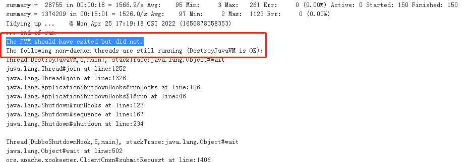 JMeter命令行执行时,出现错误 如下: The JVM should have exited but did not. The following non-daemon threads are still running (DestroyJavaVM is OK):