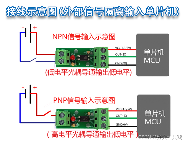 R2和R1起到分压作用,抬高光耦发光管导通电压,提高正脉冲抗干扰能力。假设LED和光耦二极管串联后的工作电压是3V,如果没有R2的情况下,在R1左侧输入电压只要一个大于3V的正向电压或干扰都会使光耦工作,而增加了R2后,输入必须达到13V以上,如此大大增加了正向抗干扰能力,如果R1到开关是一段较长的走线,这样也不容易出现识动作的情况了。