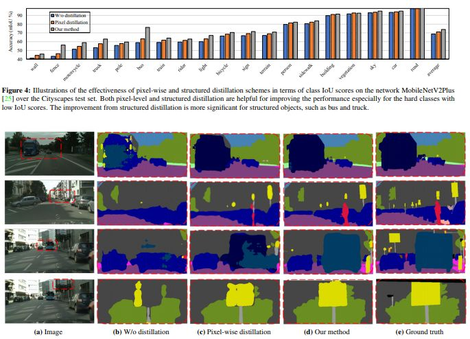 本文研究了利用大网络训练小语义分割网络的知识蒸馏策略。我们从简单的像素蒸馏方案开始,将蒸馏方案应用于图像分类,并分别对每个像素进行知识蒸馏。我们进一步提出了从大网络到小网络的结构化知识提取,这是一个结构化的预测问题,语义分割的动机。我们研究了两种结构化的蒸馏方案:(i)提取成对相似性的成对蒸馏;(i i)使用gan提取整体知识的整体蒸馏。通过对三个场景分析数据集(Cityscapes、Camvid和ADE20K)的大量实验,证明了我们的知识蒸馏方法的有效性。