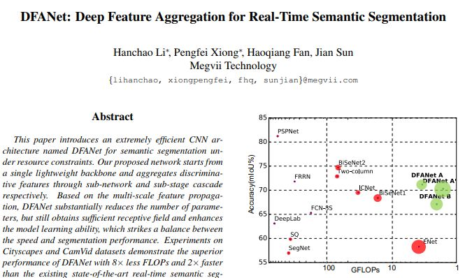 《DFANet: Deep Feature Aggregation for Real-Time Semantic Segmentation》