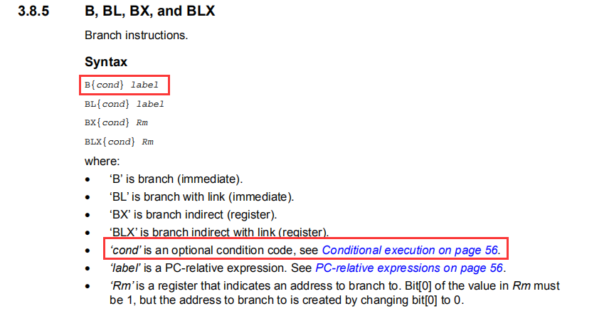 区别就在与BLE 和BLS,为搞懂这两个指令的含义,需要找ST官方的文档PM0056,在该文档的3.8.5章节由说到跳转指令: