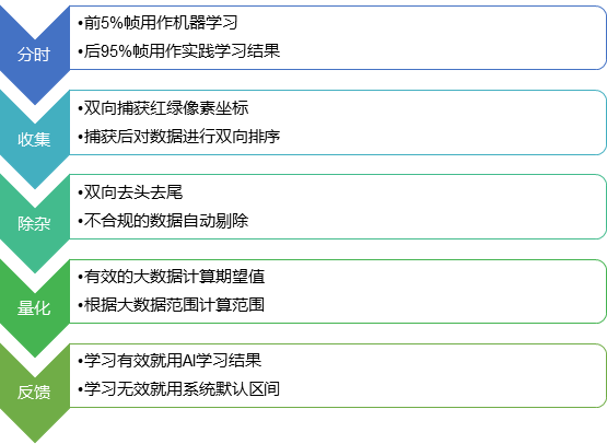 4、在应用的过程中持续监测红绿像素,如果出现大幅度像素密集点偏移,则重新学习