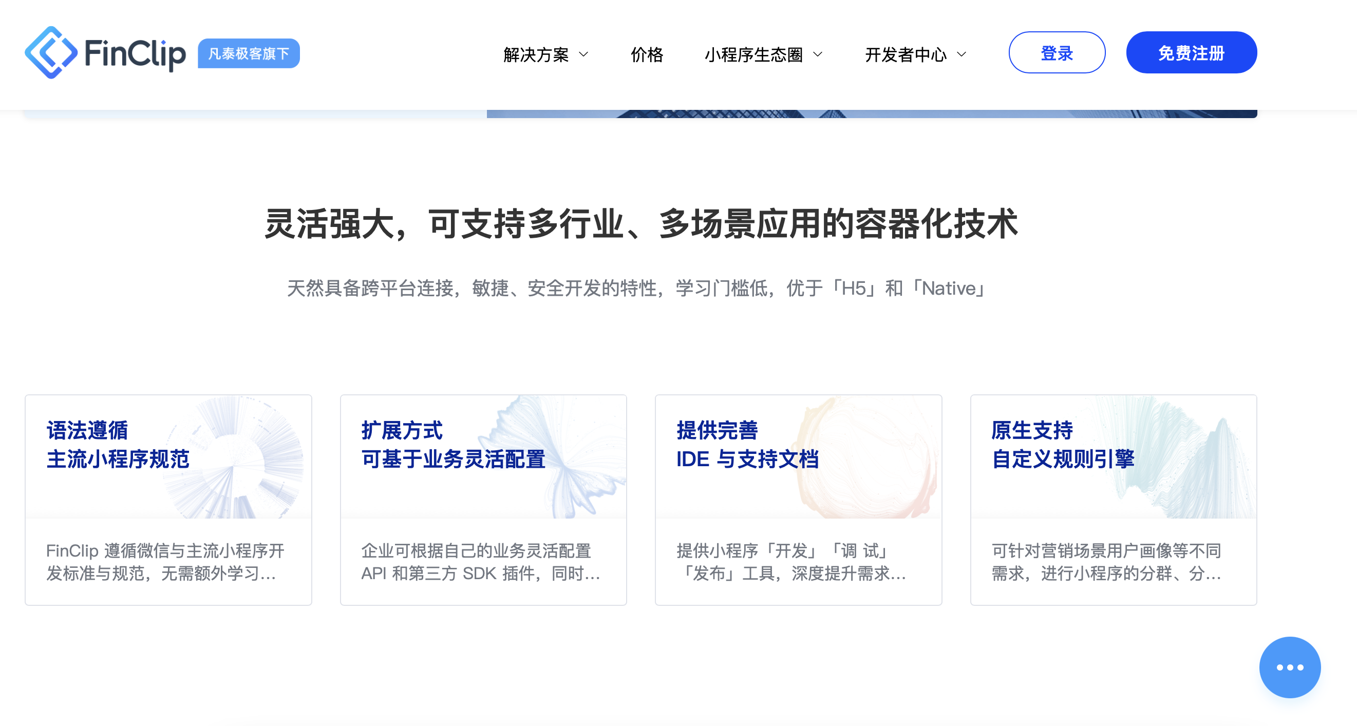 以我们公司当前的小程序技术为例,它可私有化部署、配备安全沙箱、客户端 SDK 化可随意嵌入到任何银行和券商的 App 中,它本身还是一个开发平台。这就是针对行业需求量身定做的基础技术。