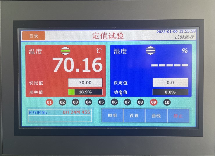 将环境温度设置为+70℃,进行高温测试。