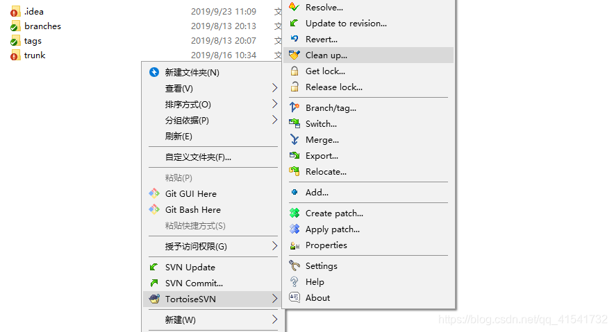 所以找到本地的项目文件下执行下 SVN 的 Clean up。