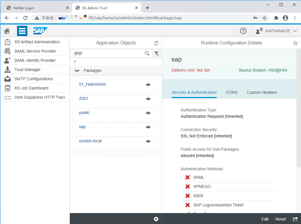 URL:http://<SAP HANA 主机名 or IP地址>:80<实例号>/sap/hana/xs/admin/