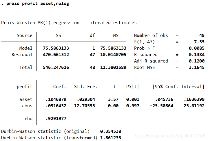 prais profit asset,corc #本命令旨在对数据进行迭代式CO估计法广义最小二乘回归分析。