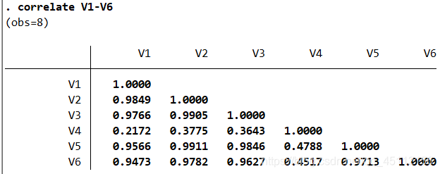 correlate V1-V5 #本命令旨在对数据进行相关性分析