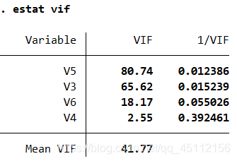 estat vif regress V2 V3 V4estat vif regress V2 V3