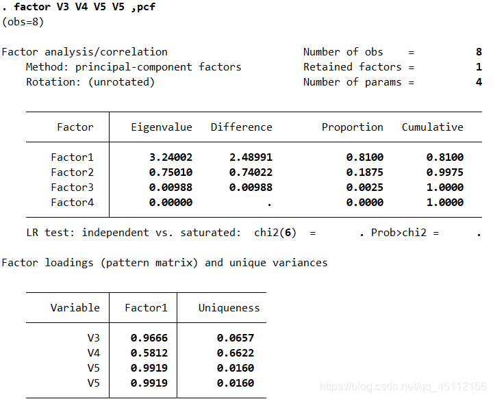 factor V3 V4 V5 V6 ,pcf #本命令旨在对4个变量提取公因子