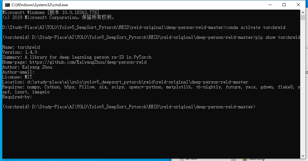 尝试pip show torchreid看看是否存在问题,显示正常信息那就不存在问题了
